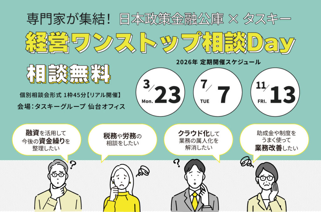 良い経営には企業の強みに集中する時間が必要です。そして、そのためには良い仕組みが必要です。タスキー株式会社では、経理・税務・労務などのパッケージ型アウトソーシングサービスを提供することで、中小企業様のバックオフィスインフラの整備をサポートしています。